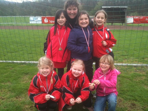 Hinten v.l.: Angela Nickoll (Trainerin)Mitte v.l.: Emilie, Jasmin, SofieVorn: Lisa, Lea-Chantal, JosefinEs fehlen: Nele, Lucy, Jennifer, Leonie