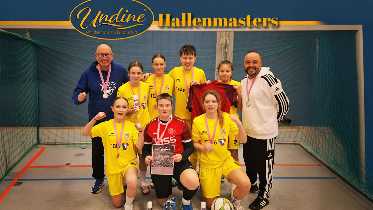 Beim Undine-𝐇𝐀𝐋𝐋𝐄𝐍𝐌𝐀𝐒𝐓𝐄𝐑𝐒 𝐝𝐞𝐫 𝐅𝐑𝐀𝐔𝐄𝐍 stellten sich am Samstag insgesamt zehn Teams in der Rosentalhalle in Pößneck zum sportlichen Vergleich. Veranstaltet wurde das Turnier von den Meyers Schicke Mädels des TSV 1898 Oppurg e.V. - Fussball. Mit einer U16-Vertretung nahm der JFC Saale-Orla in Zusammenarbeit mit dem 1. FFC Saalfeld teil. Die 13- und 14-jährigen Mädchen spielen sonst in einer gemischten Mannschaft in der Kreisoberliga der C-Junioren.