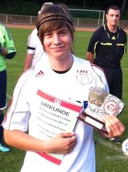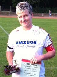 Auch die Torschützenkönigin der Landesklasse Ost kommt vom heimischen FFC. Tina Sommer (unten) traf dabei zwölfmal für die 2. Mannschaft und gehört seit diesem Sommer zum Kader der Verbandsligamannschaft. Schließlich wurde noch Katja Fiebig von der SG Ilmenau/Arnstadt ausgezeichnet. Mt ihren 14 Treffern hatte sie die meisten in der Landesklasse Süd erzielt.